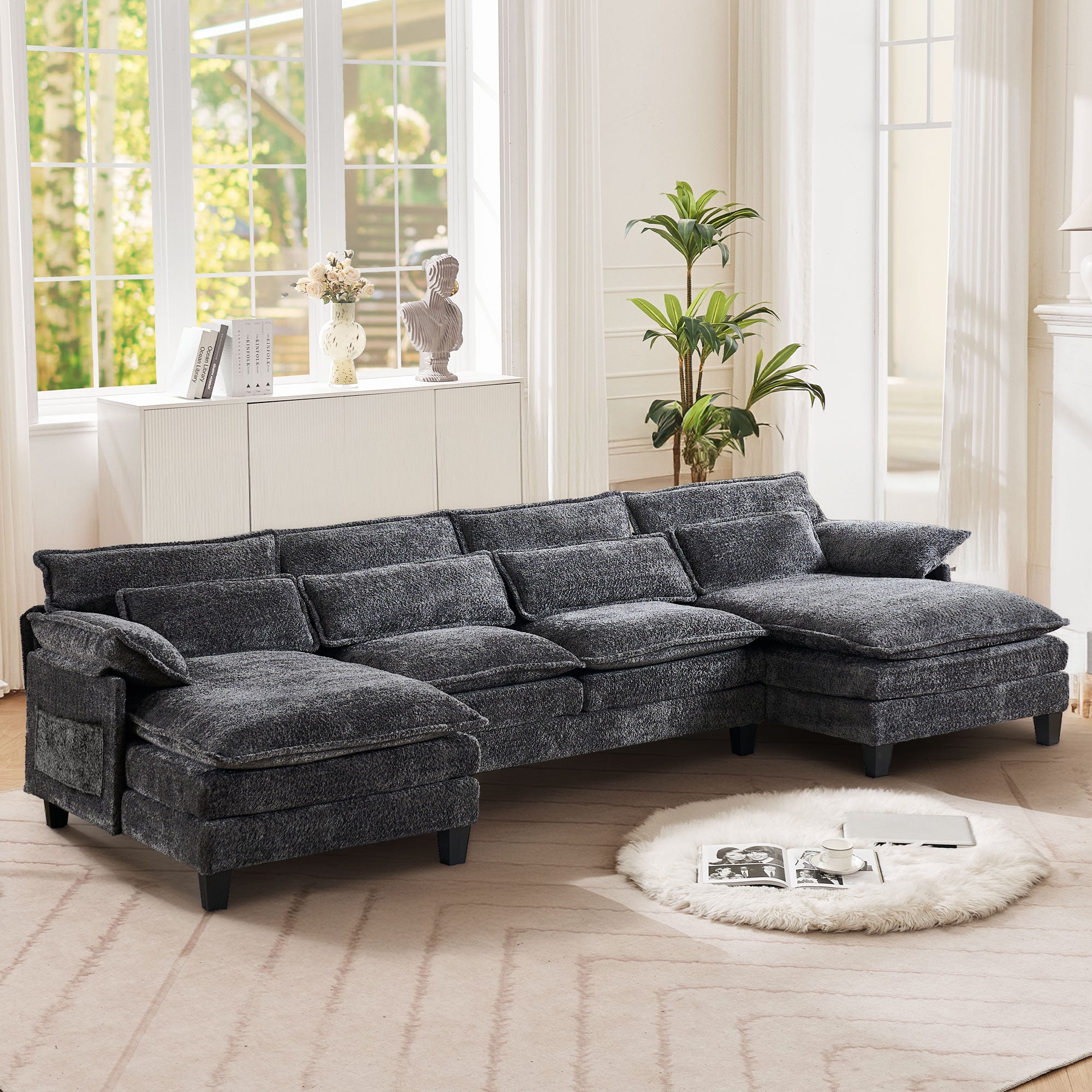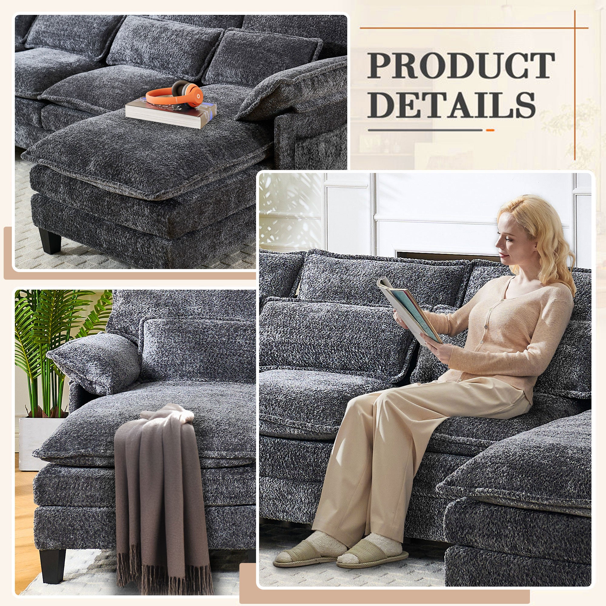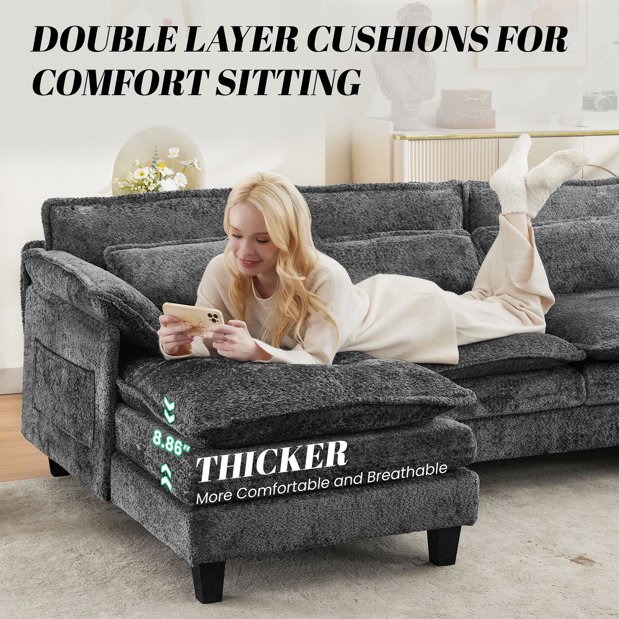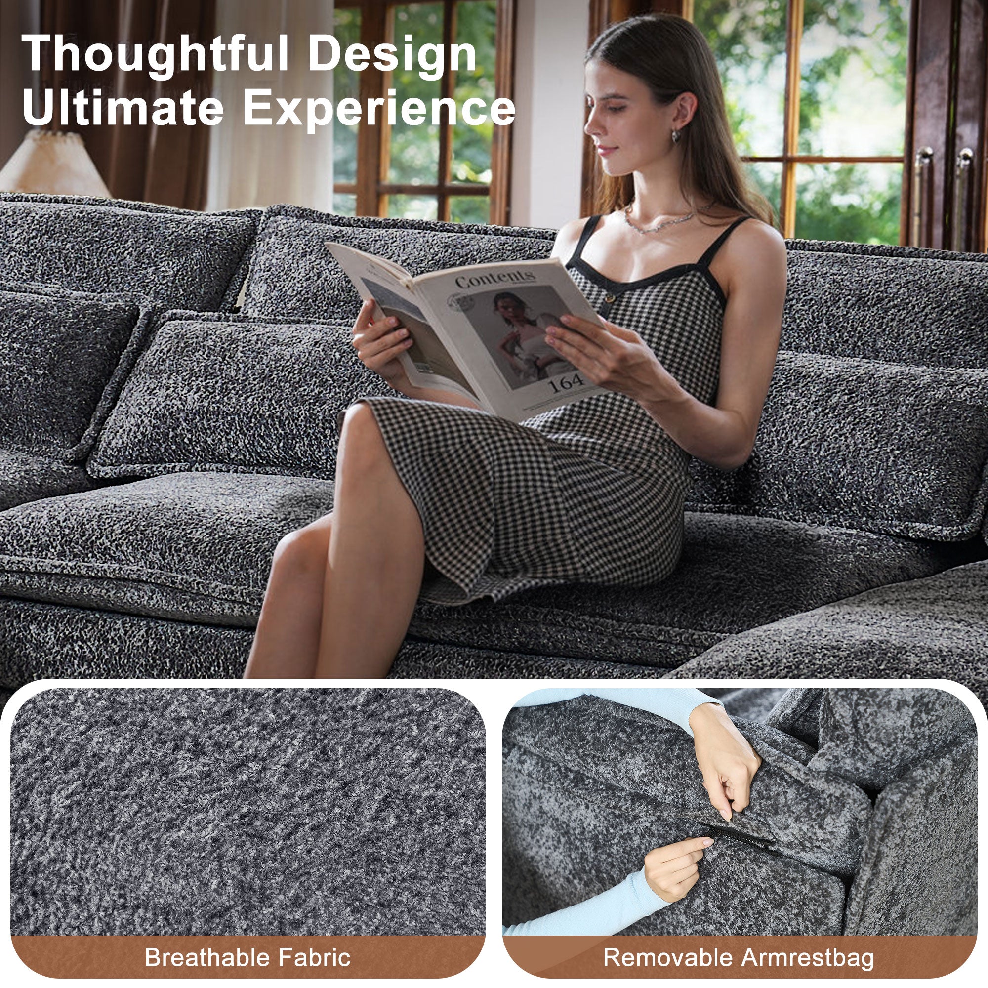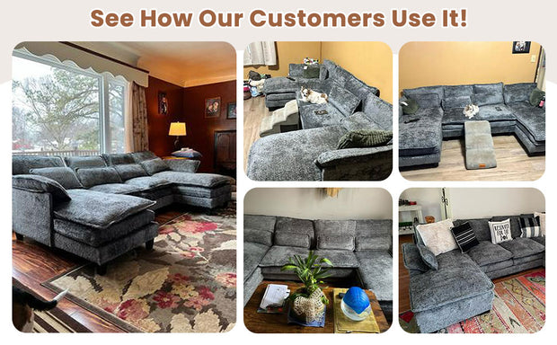 JONPONY 109" Modular Sectional Sofa,Boucle Couch Set,U-Shaped Sleeper Sofa for Living Room,Grey