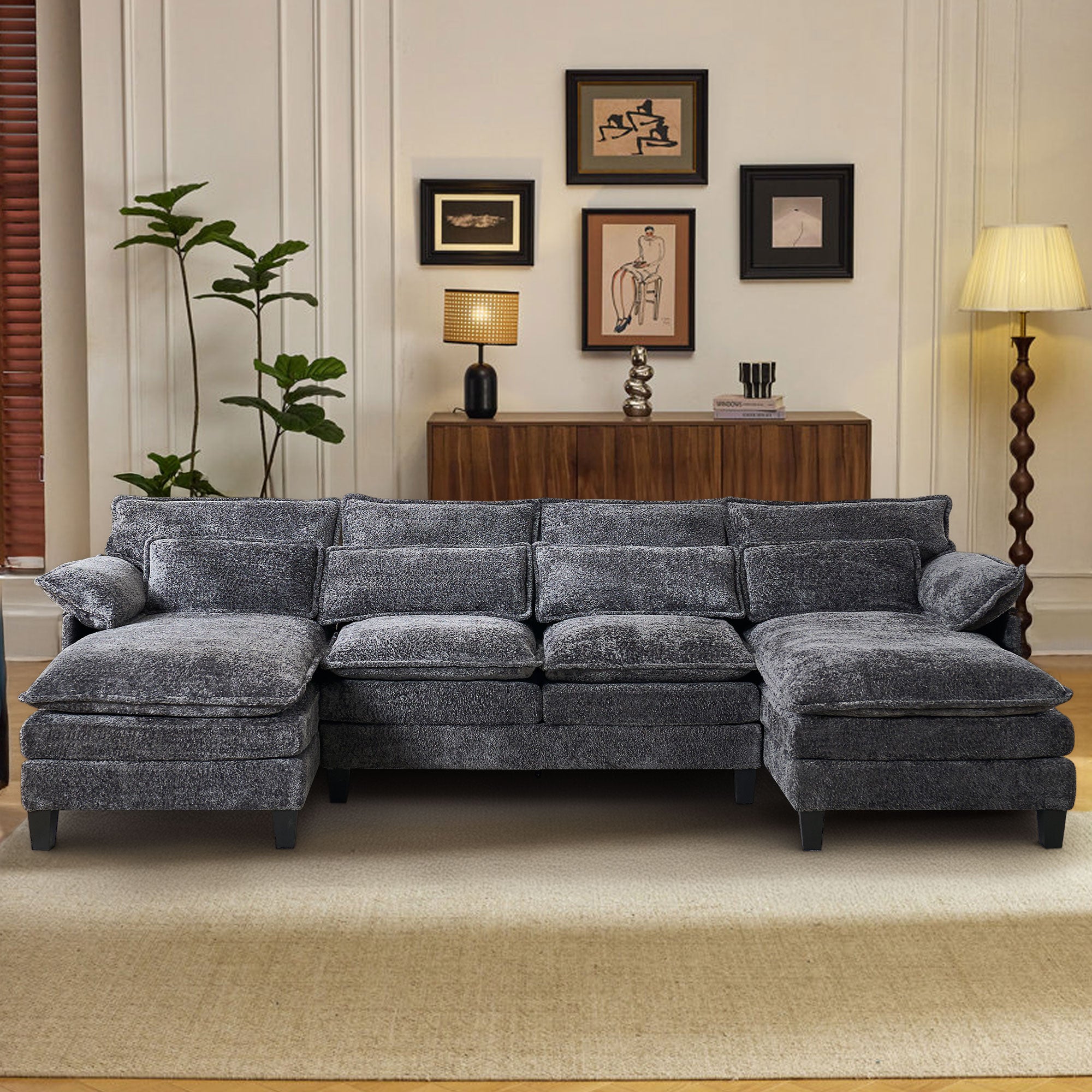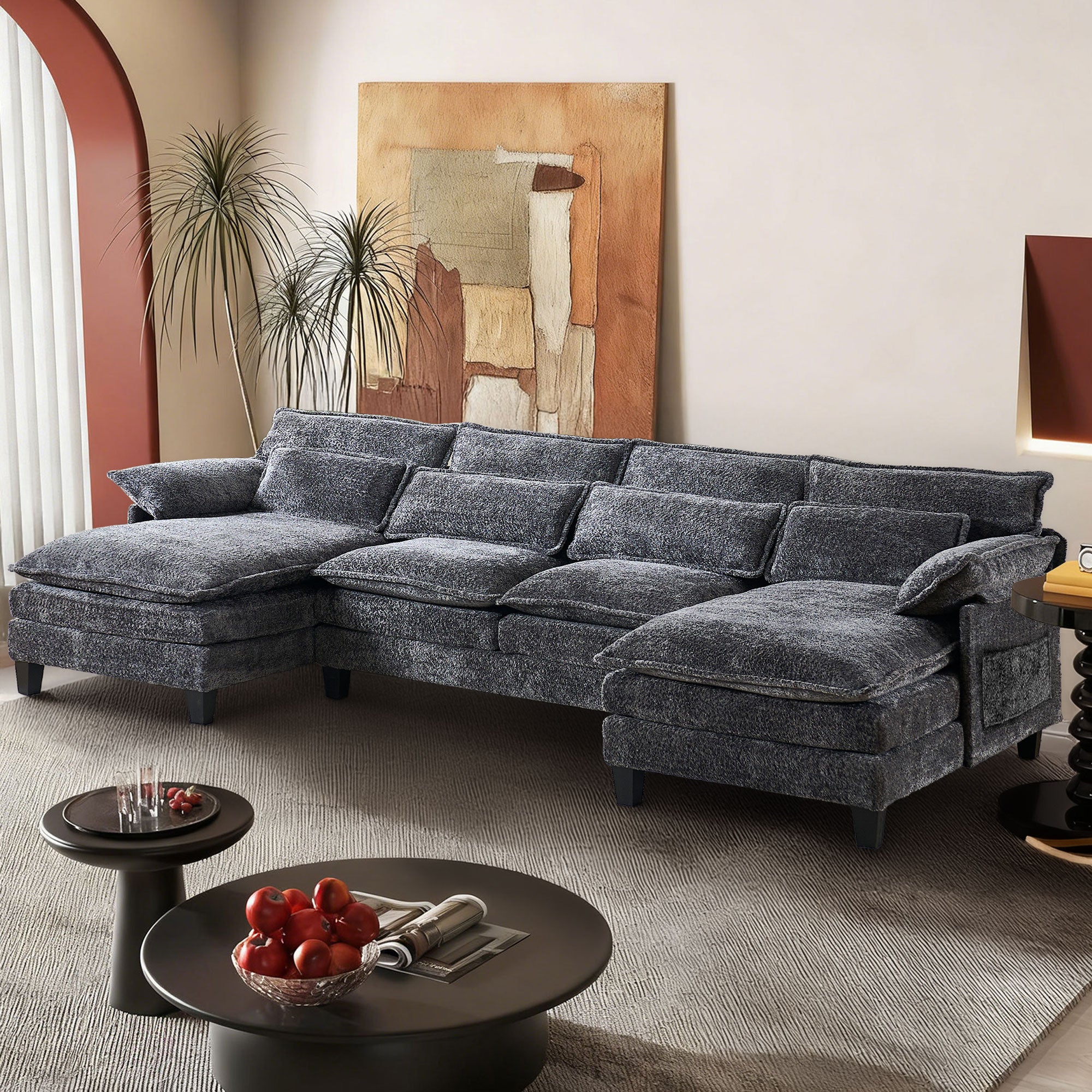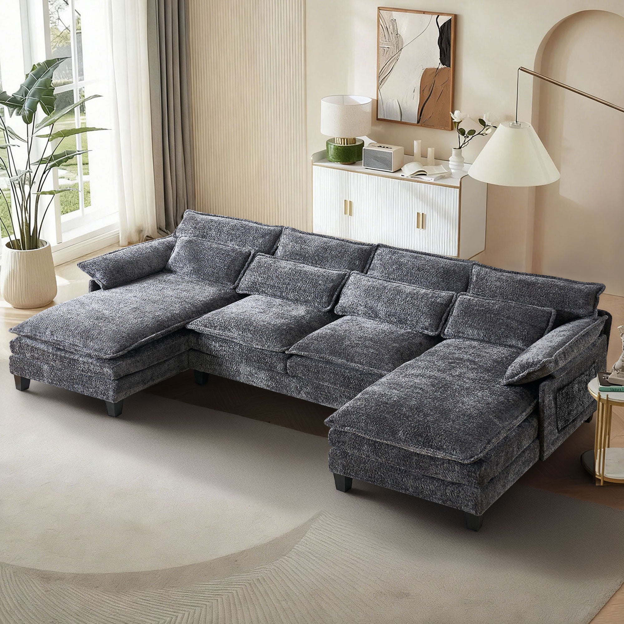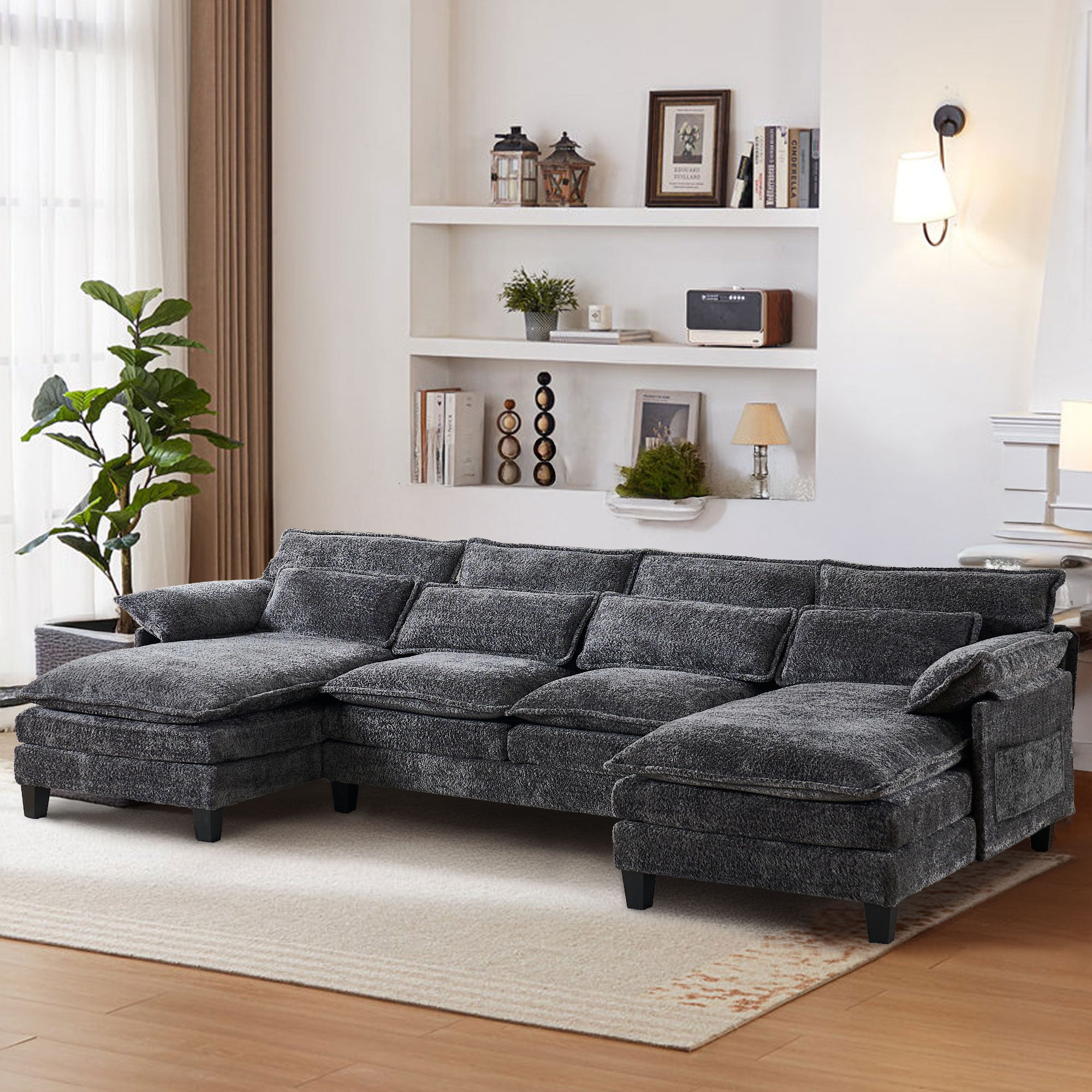 JONPONY 109" Modular Sectional Sofa,Boucle Couch Set,U-Shaped Sleeper Sofa for Living Room,Grey