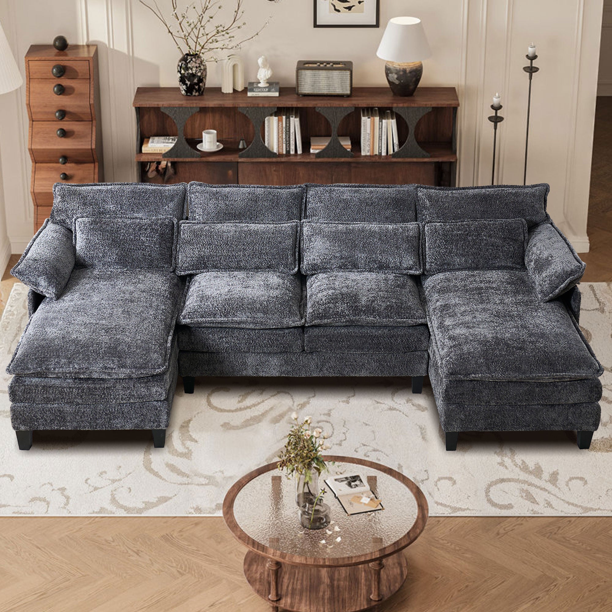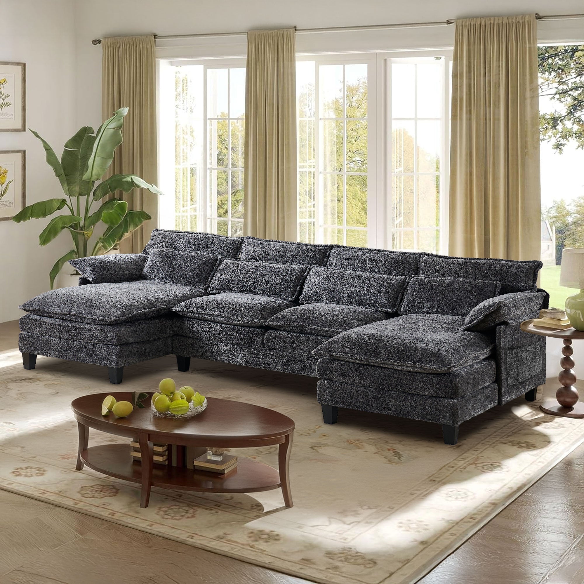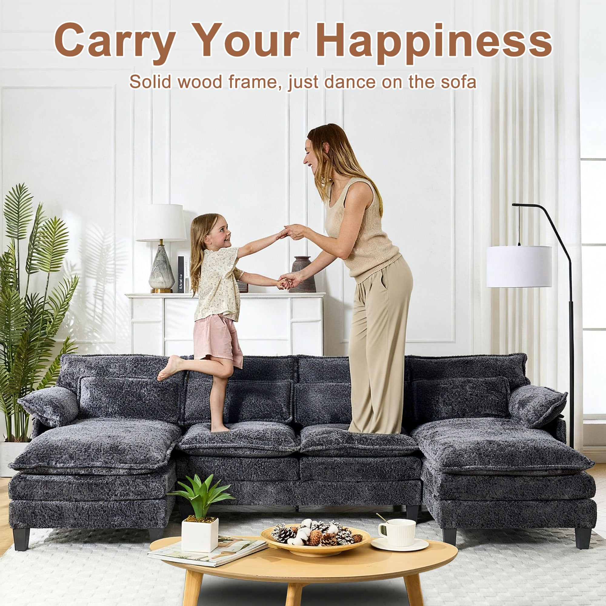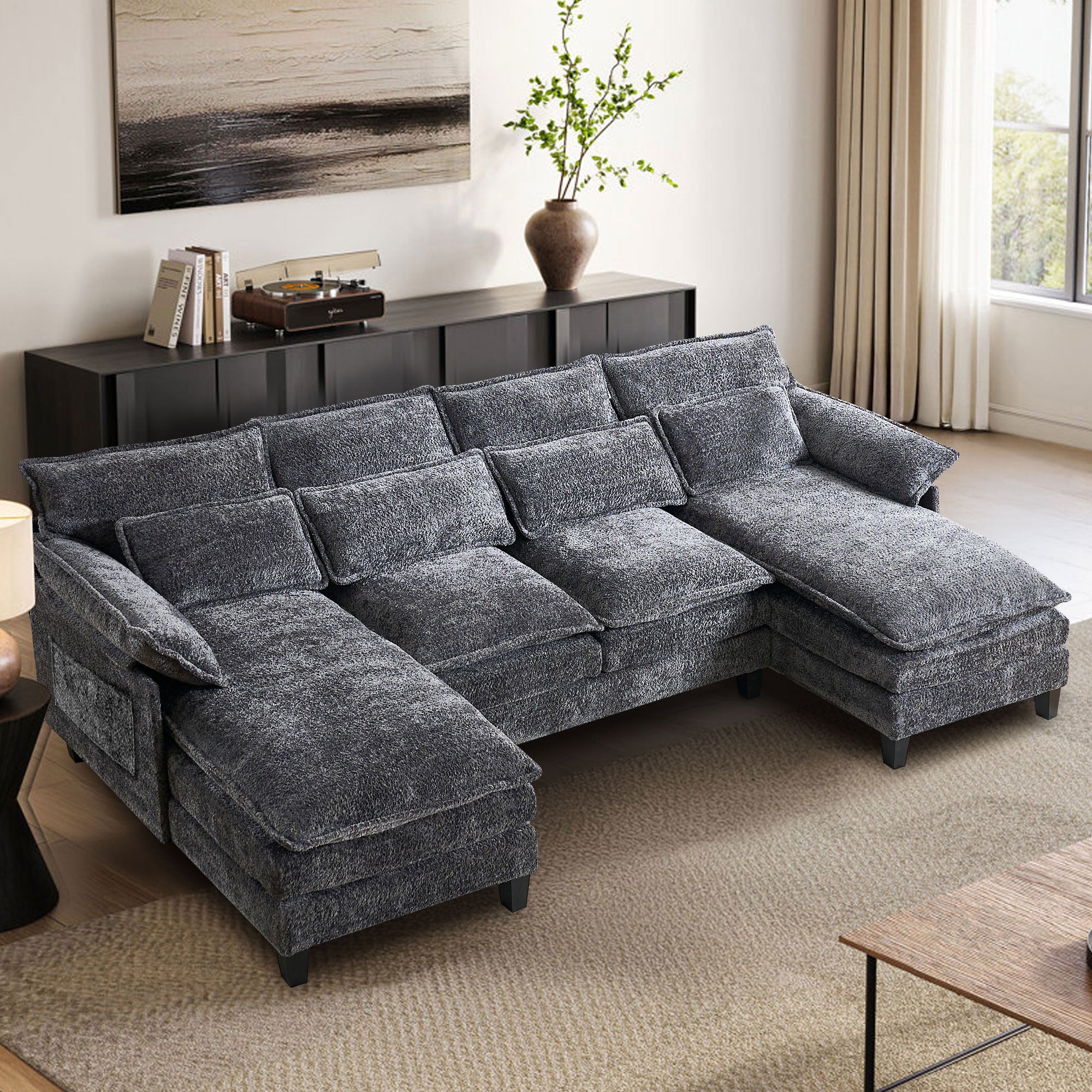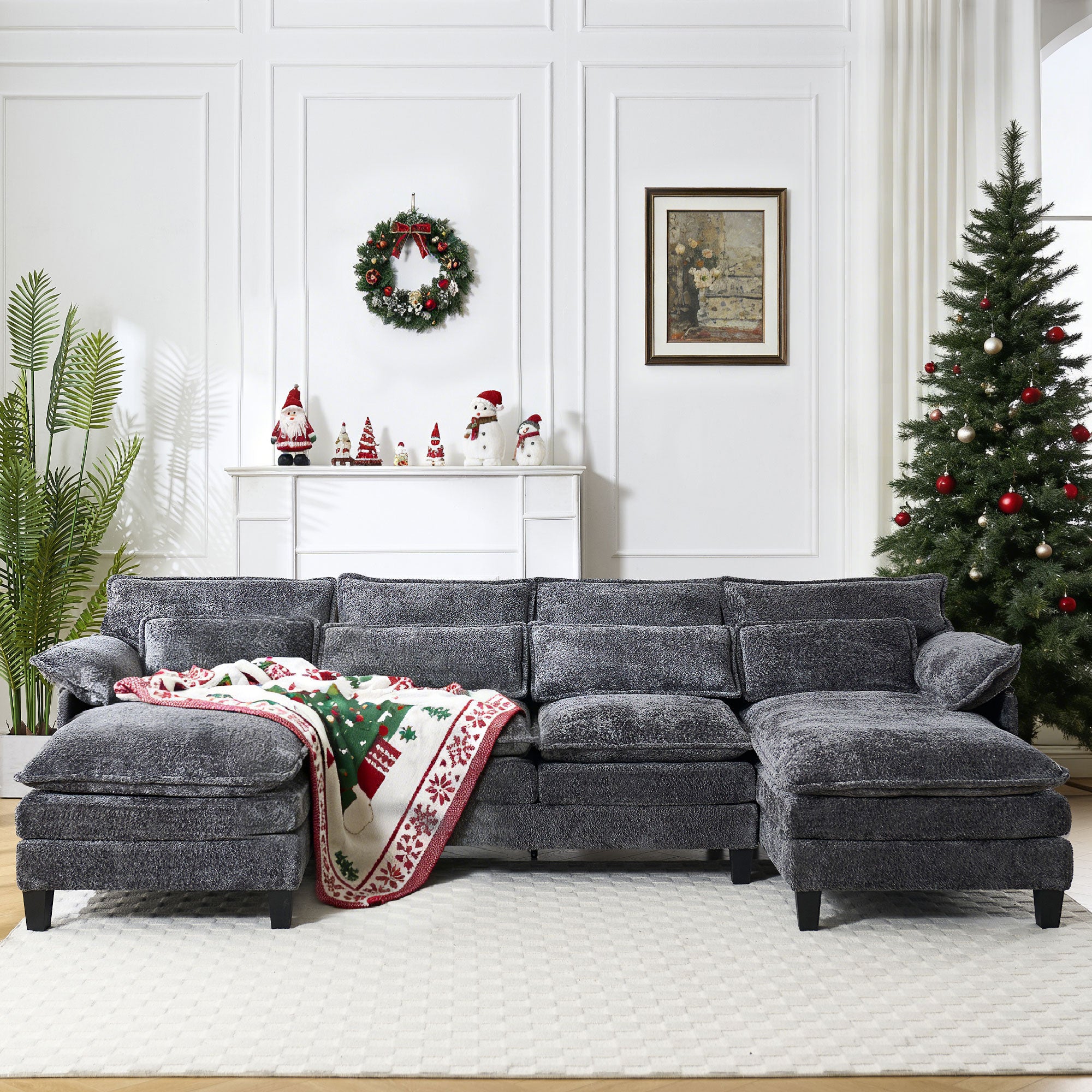 JONPONY 109" Modular Sectional Sofa,Boucle Couch Set,U-Shaped Sleeper Sofa for Living Room,Grey