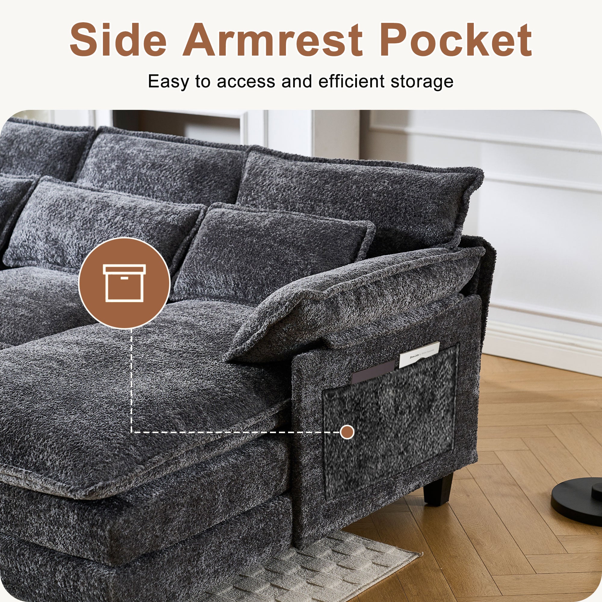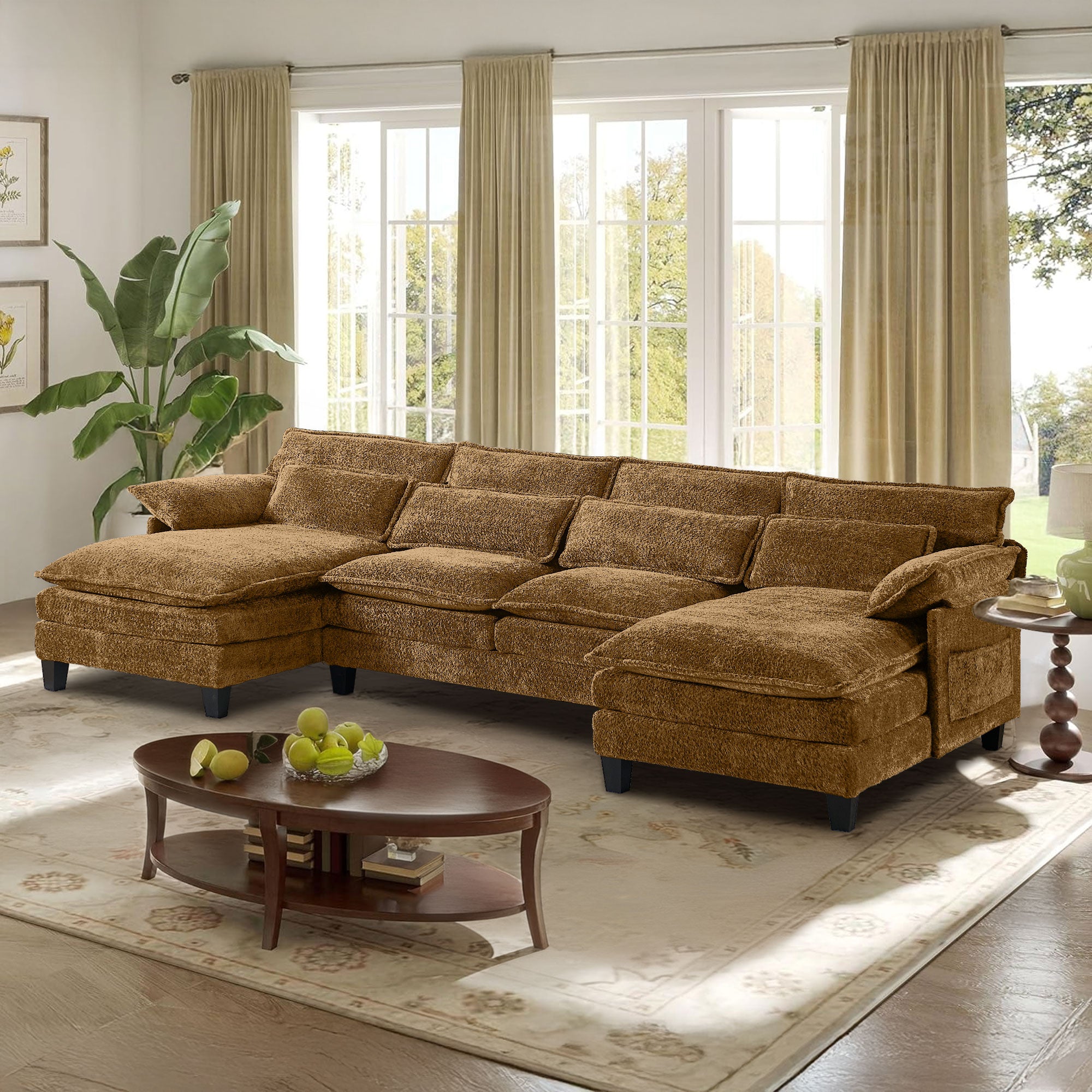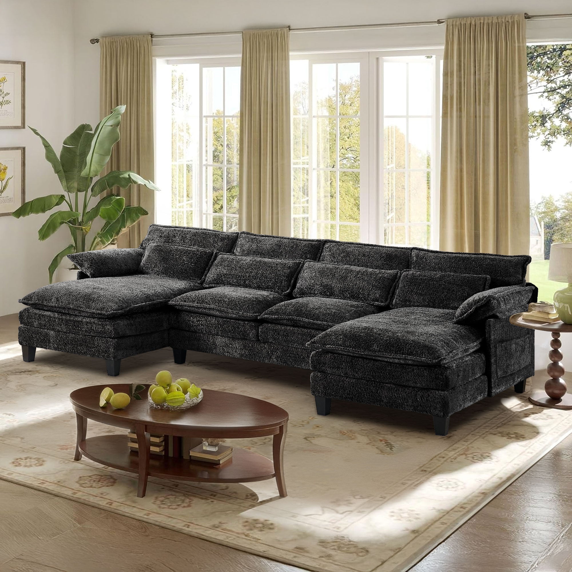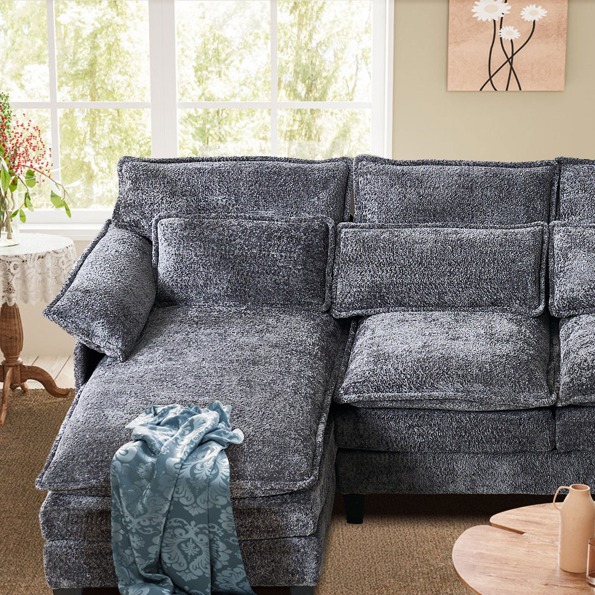 JONPONY 109" Modular Sectional Sofa,Boucle Couch Set,U-Shaped Sleeper Sofa for Living Room,Grey