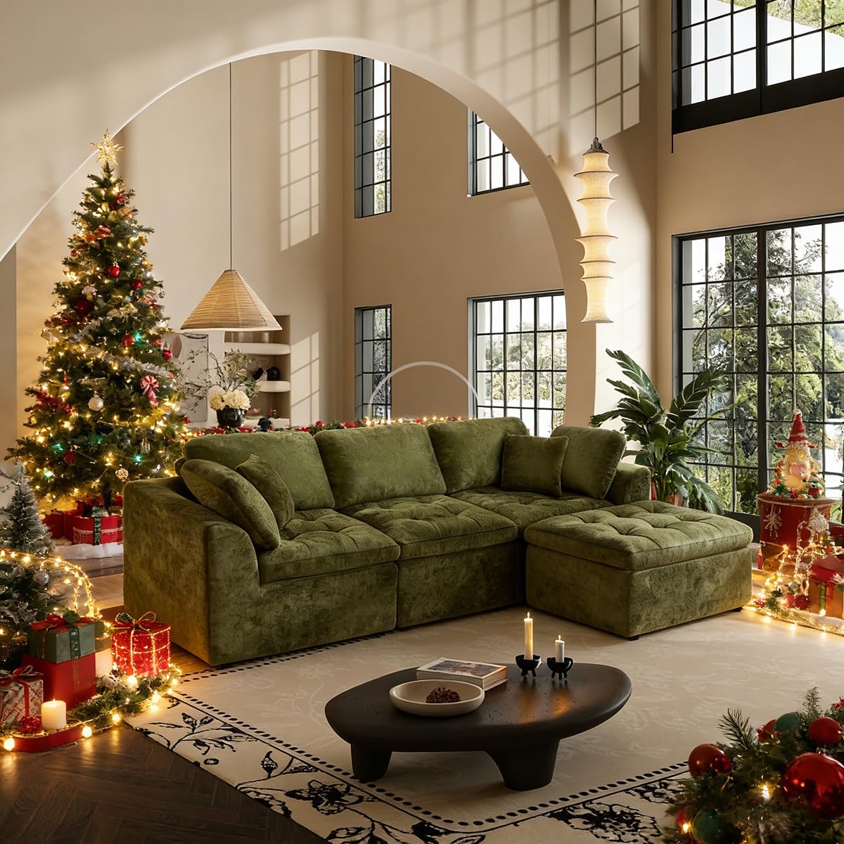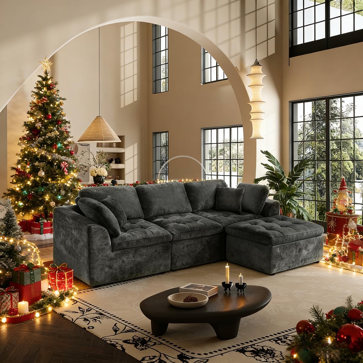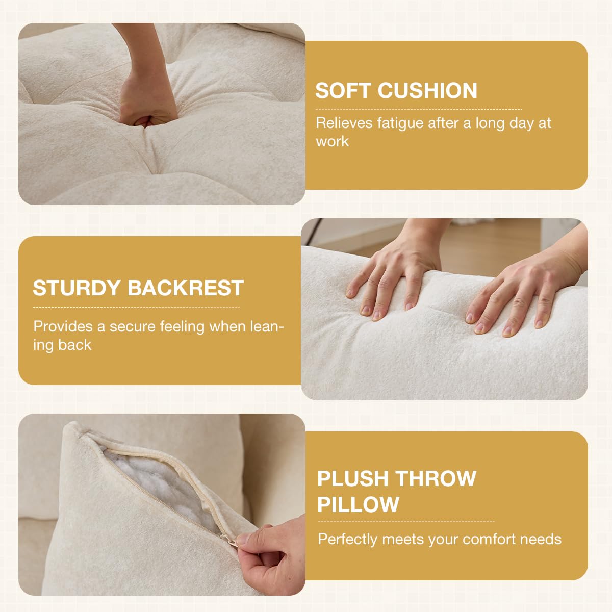 JONPONY 110" Cloud Sectional Couch for Living Room, Upholstered L-Shape Modular Sofa with Movable Ottoman, 3-Seater Deep-Seat Foam Couch, Comfortable Convertible Sectional for Home & Apartment(Beige)