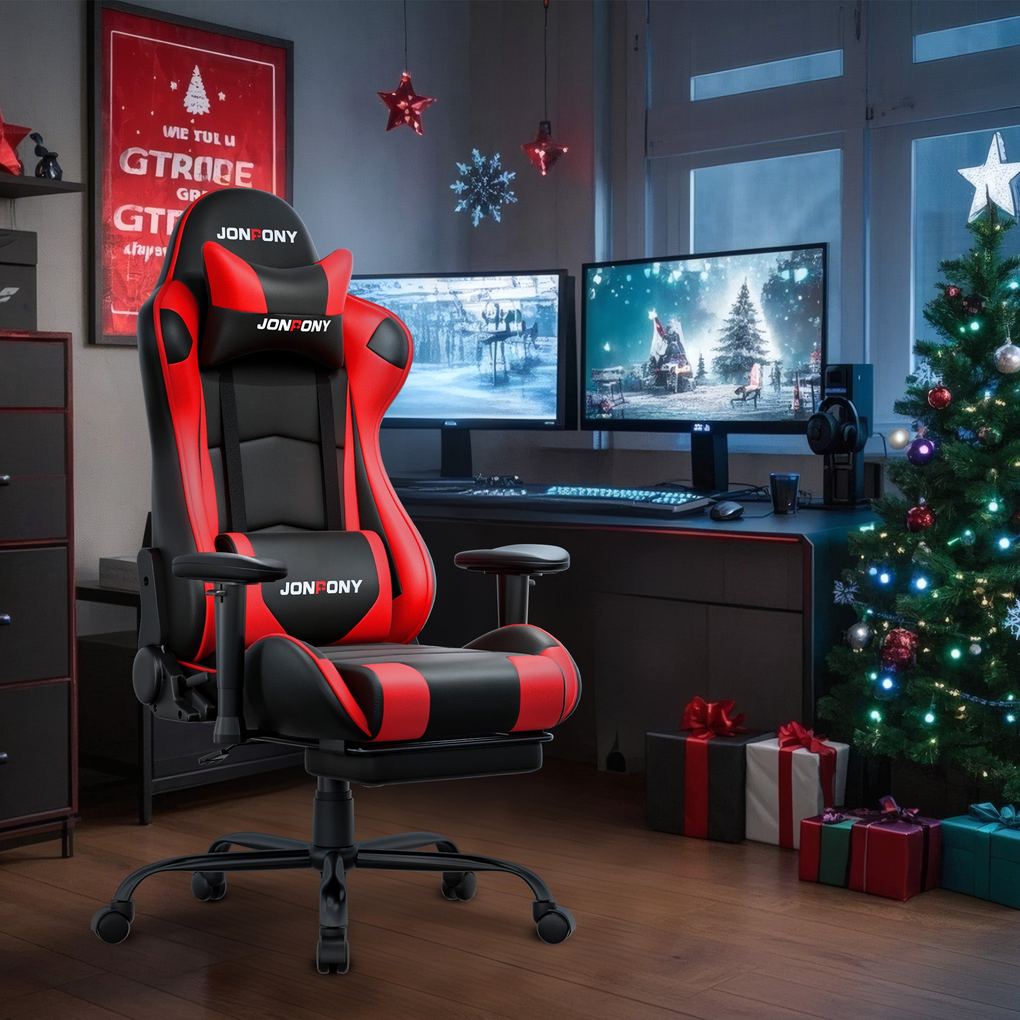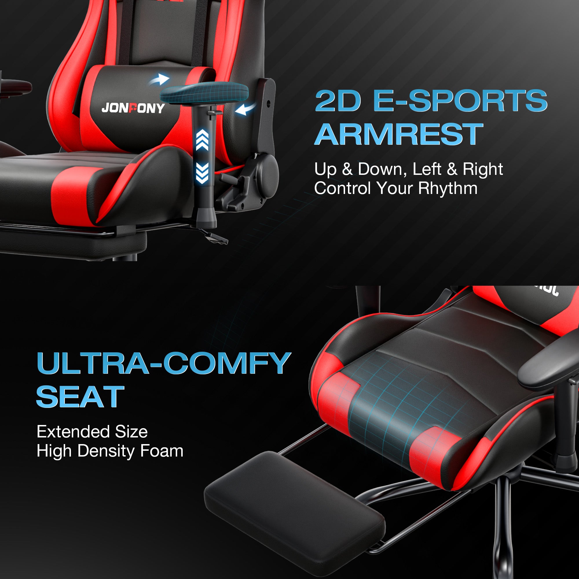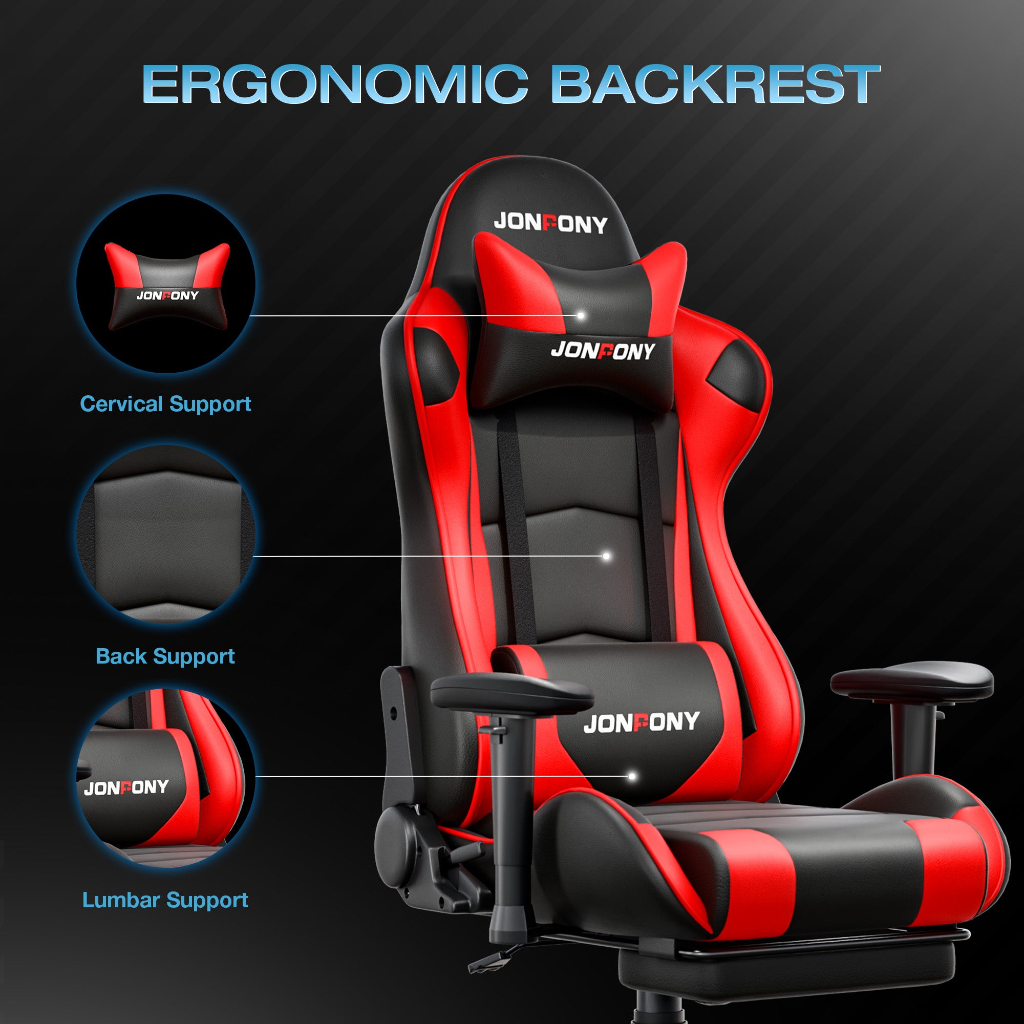 JONPONY Big and Tall 500LBS Gaming Chair, Ergonomic Design, Gamer Chair PU Leather with Footrest and Lumbar Support, High Back Office Chair Support 8 Hours Long Sitting,Red Computer Chair,Red