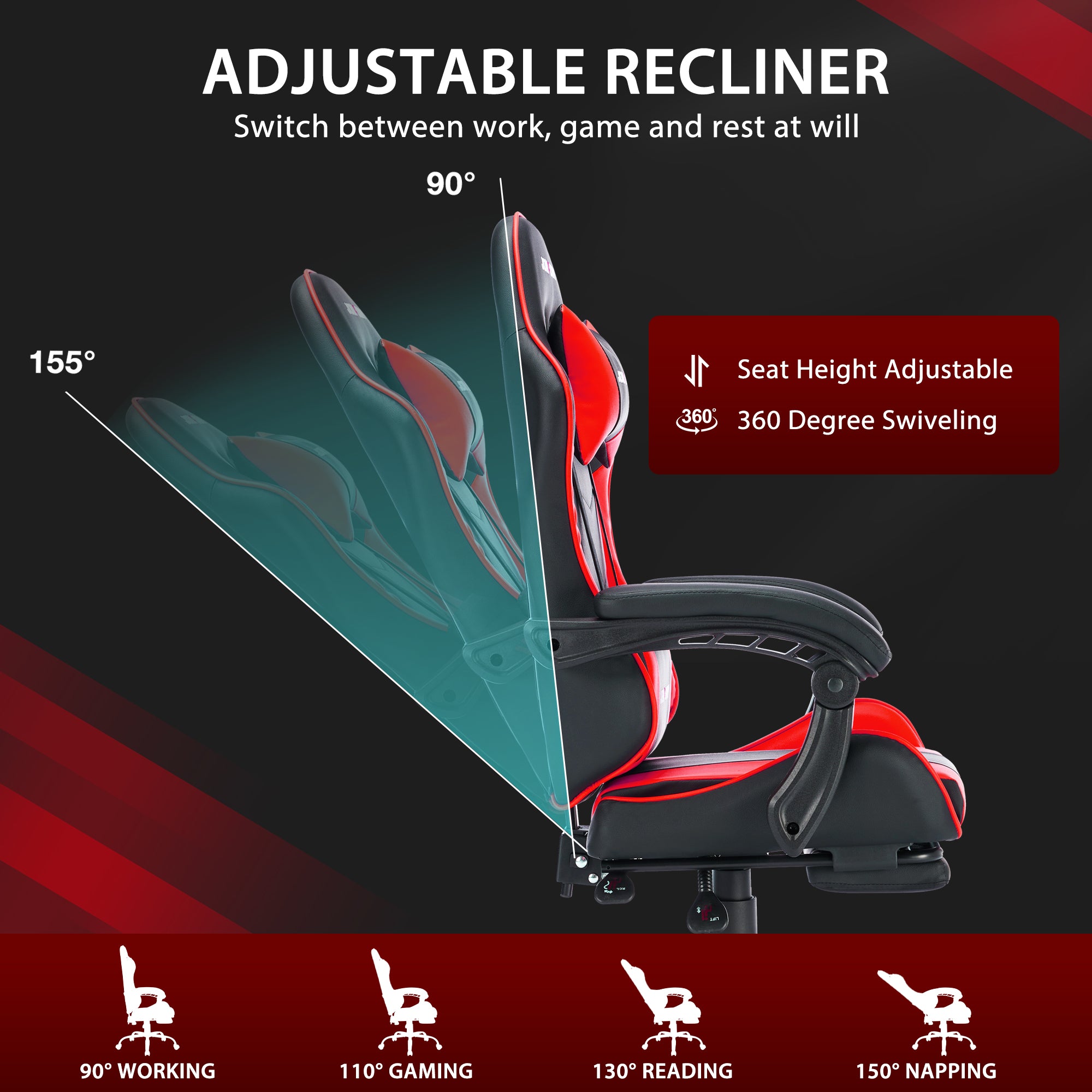JONPONY Big and Tall 400LBS Gaming Chair, Ergonomic Design, Gamer Chair PU Leather with Footrest and Lumbar Support, High Back Office Chair Support 8 Hours Long Sitting, Computer Chair,Red