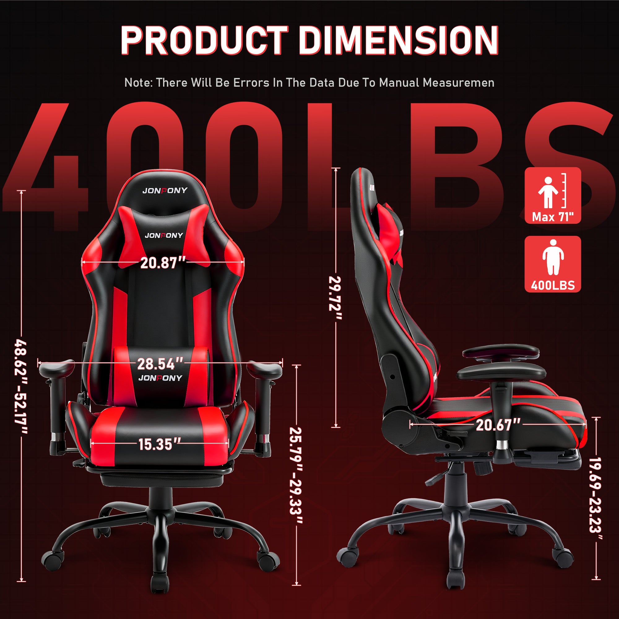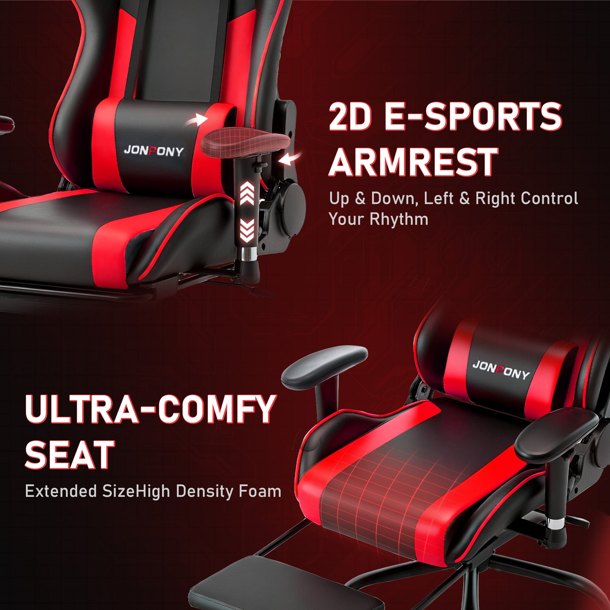 JONPONY Game Chair,Ergonomically Designed Computer Chair with headrest and 2D Armrests,with Footrest and Lumbar Support,High Back Office Chair Support 8 Hours Long Sitting,Computer Chair,RED
