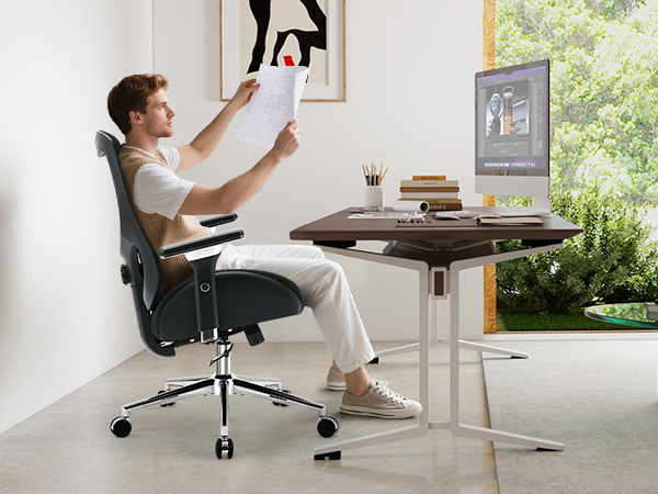 The JONPONY new version office desk chair holds adjustable lumbar support and 4D armrests,with a fusion of a modern, youthful... Read more Read more