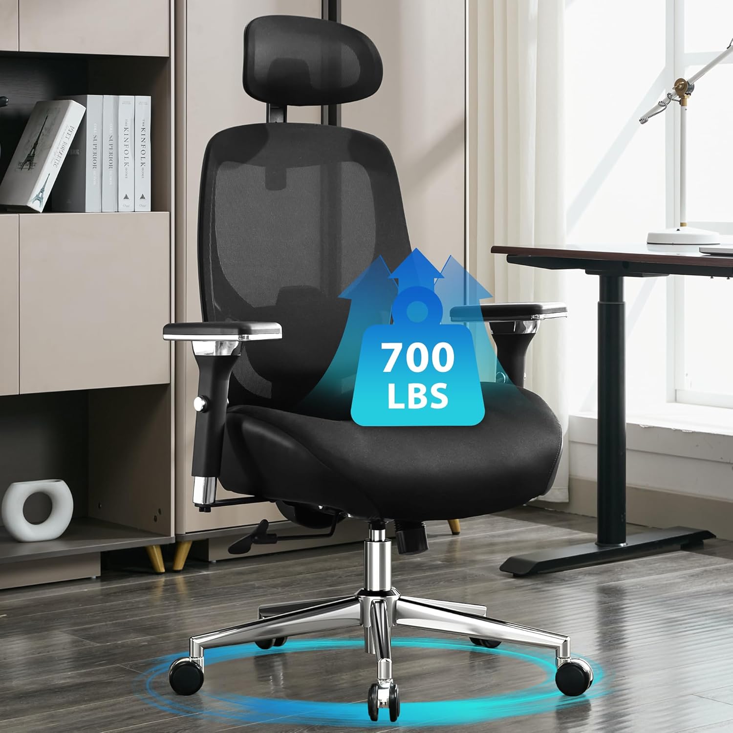 JONPONY Big and Tall Office Chair 500LBS Ergonomic Office Chair with Lumbar Support, 4D Adjustable Armrest Mesh Chair,8 Hours Heavy Duty Design,Black