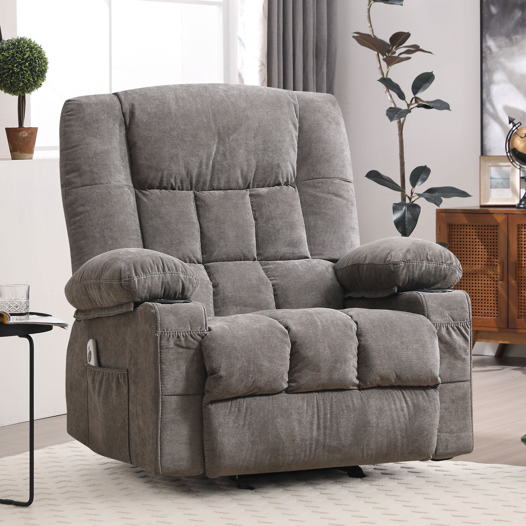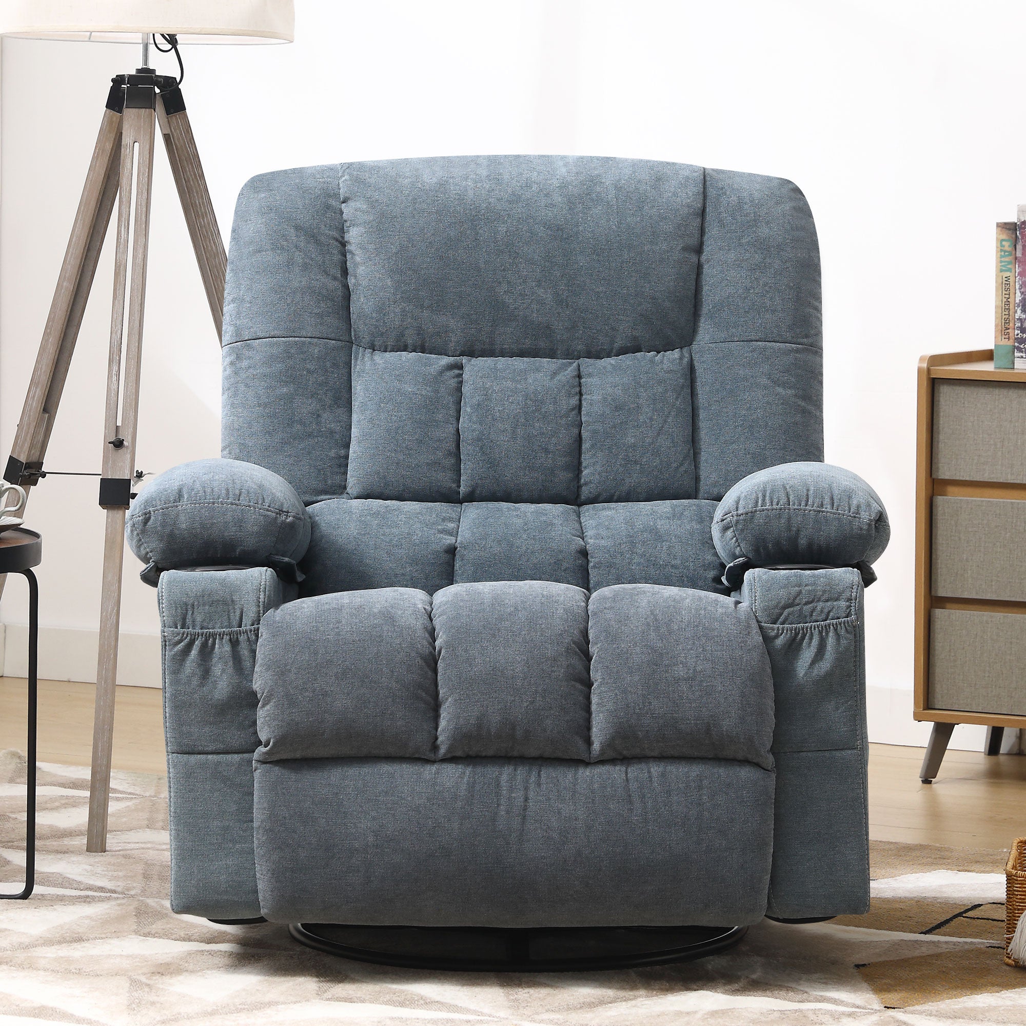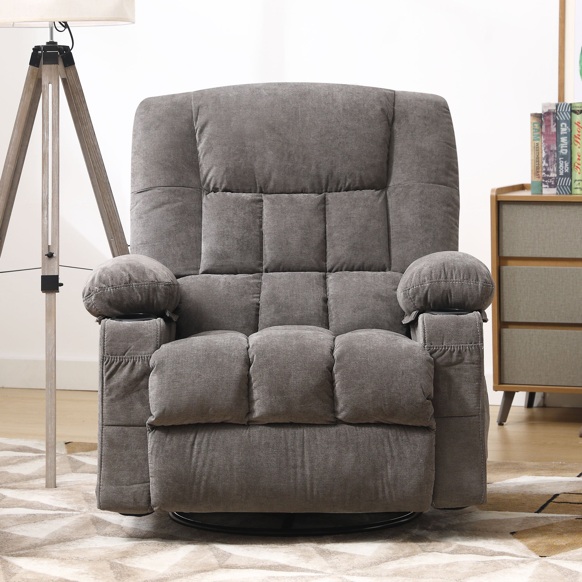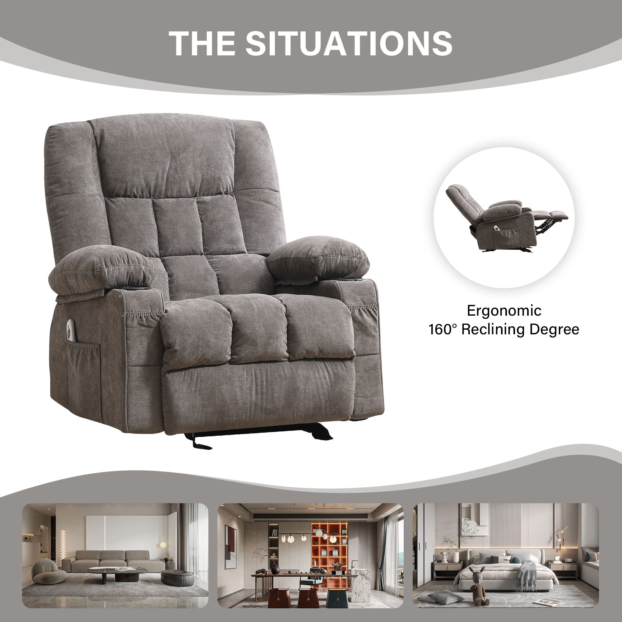 JONPONY Recliner Chair, Swivel Rocker Recliner Chair for Adults, Upholstered Manual Recliner with Side Pockets,Massage Swivel Rocker Recliner Chair for Living Room, Grey