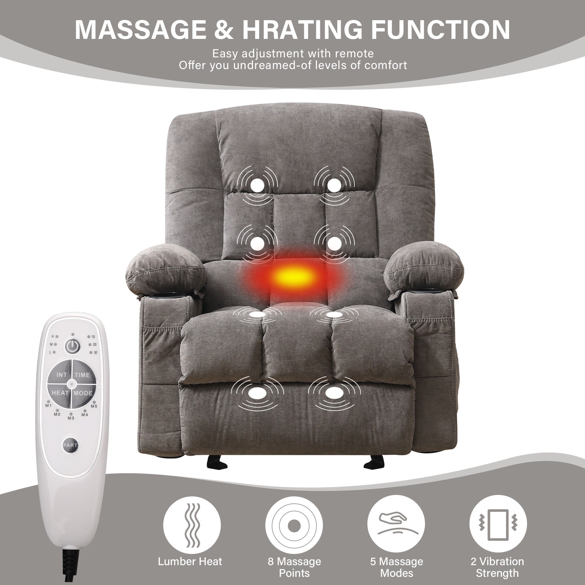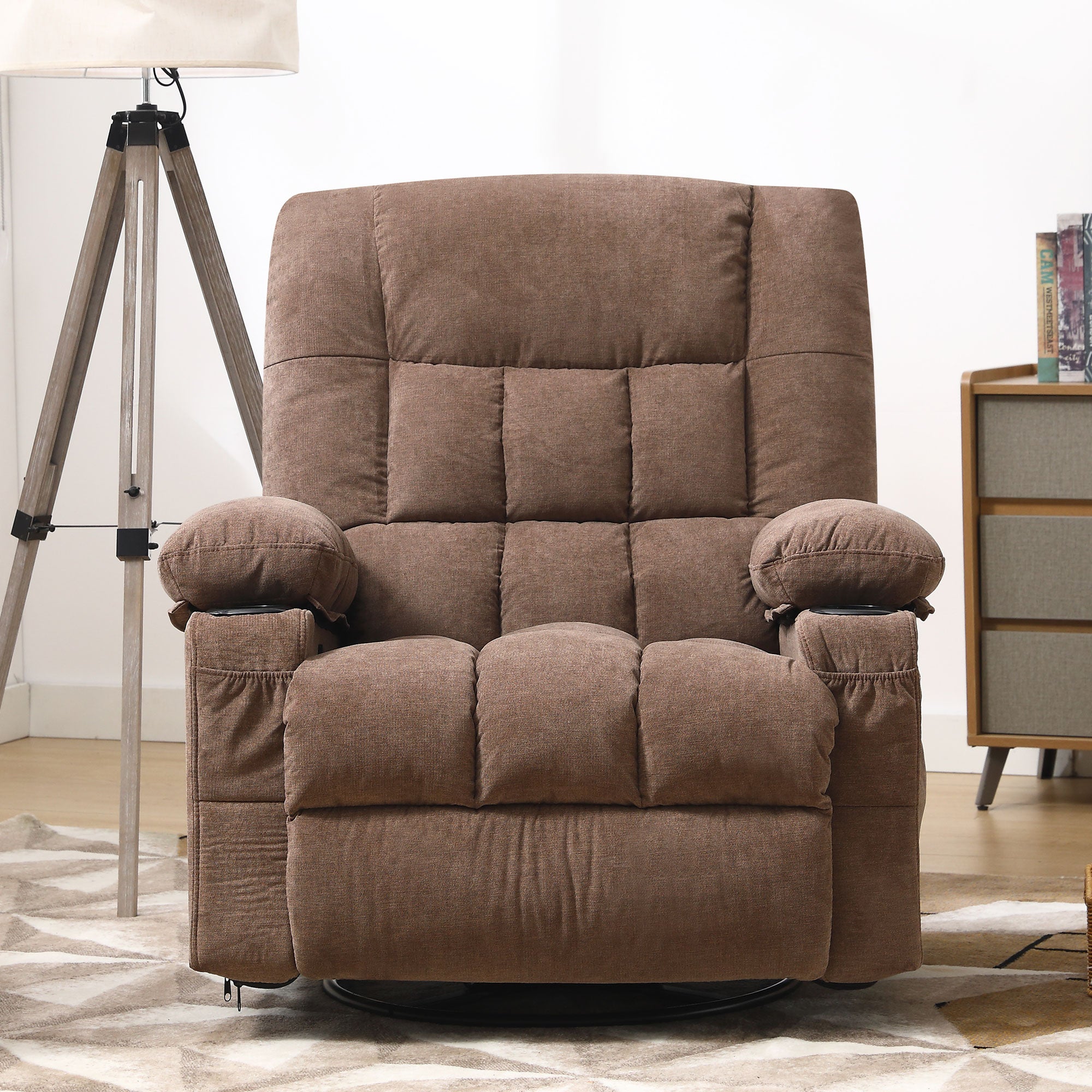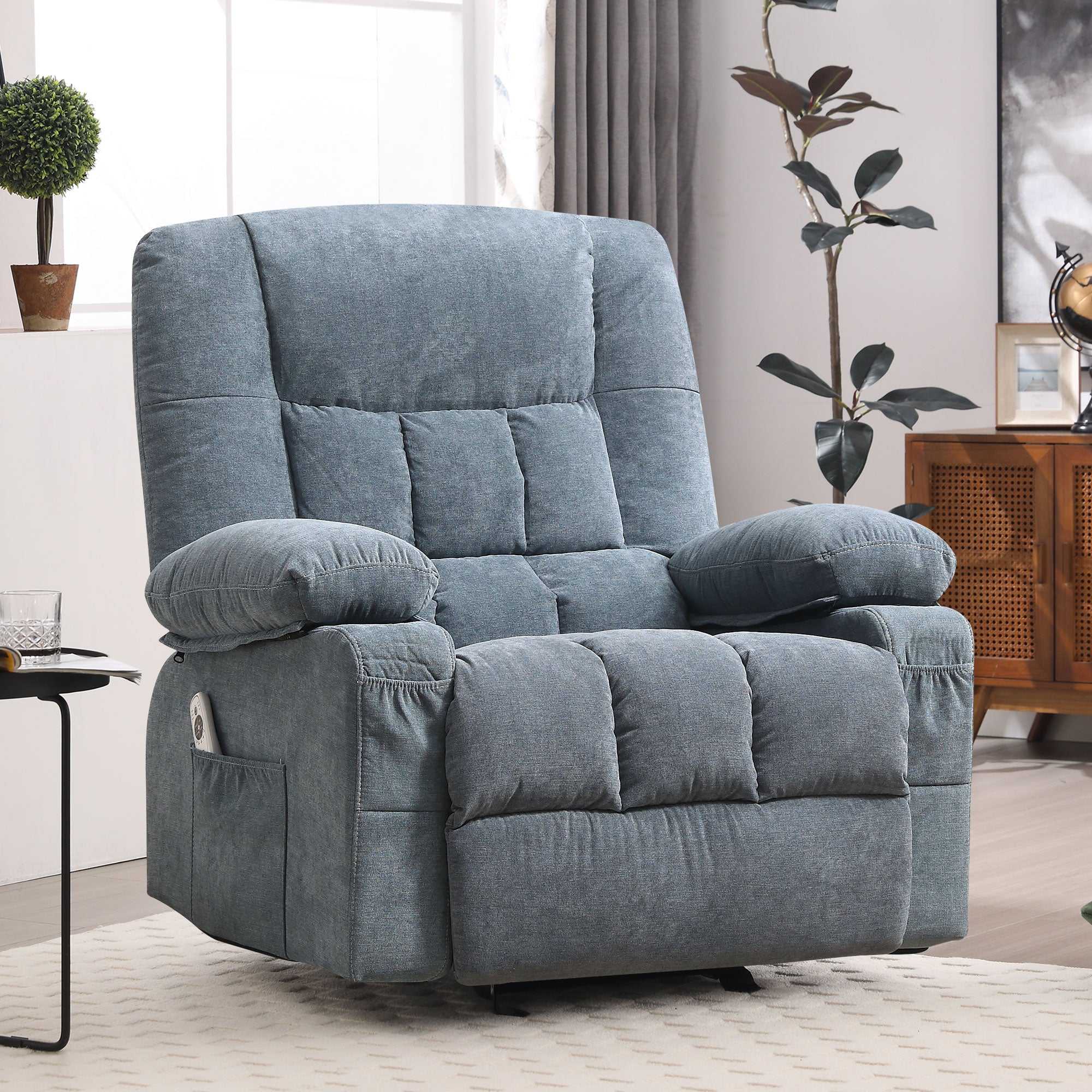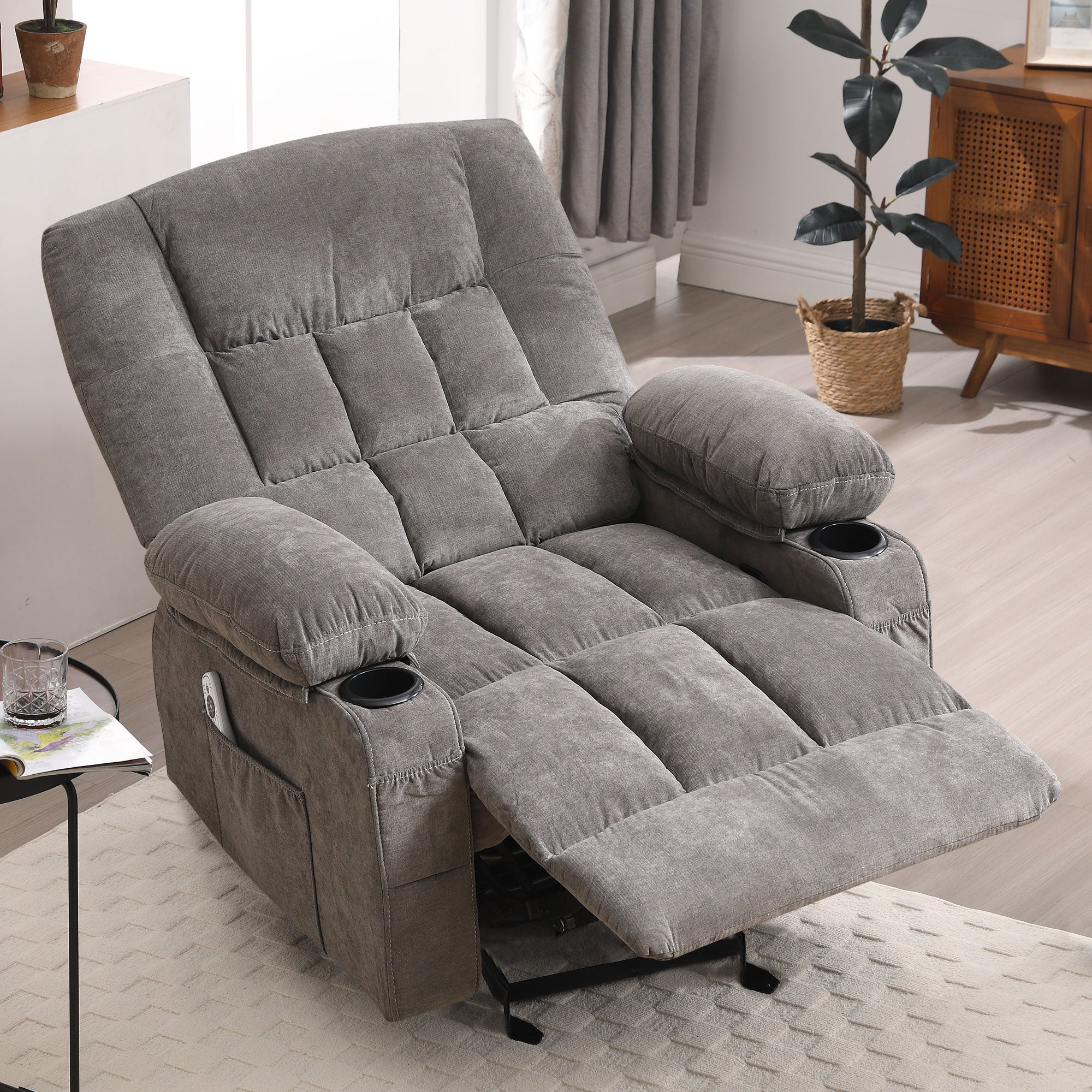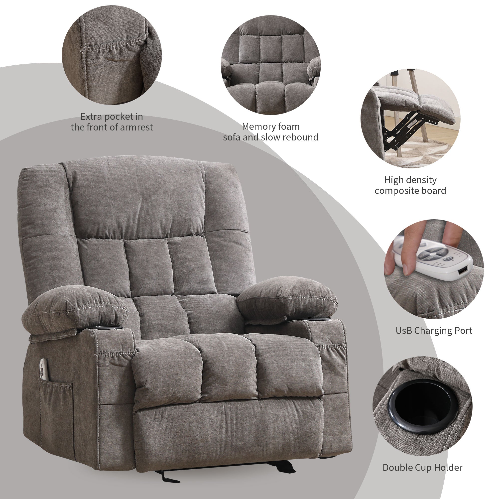 JONPONY Recliner Chair, Swivel Rocker Recliner Chair for Adults, Upholstered Manual Recliner with Side Pockets,Massage Swivel Rocker Recliner Chair for Living Room, Grey